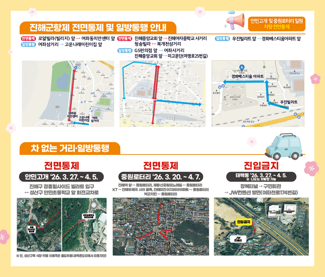 차 없는 거리 및 일반통행 안내